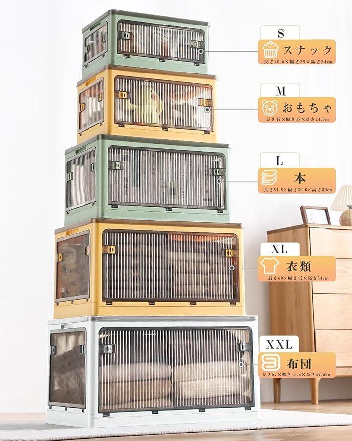 スペースを節約して、日常の衣類や本やおもちゃ食品などの物は折り畳みコンテナに置いて、ふたを閉めれば、ホコリ防止、防塵・防カビ・防湿・防虫ができます。