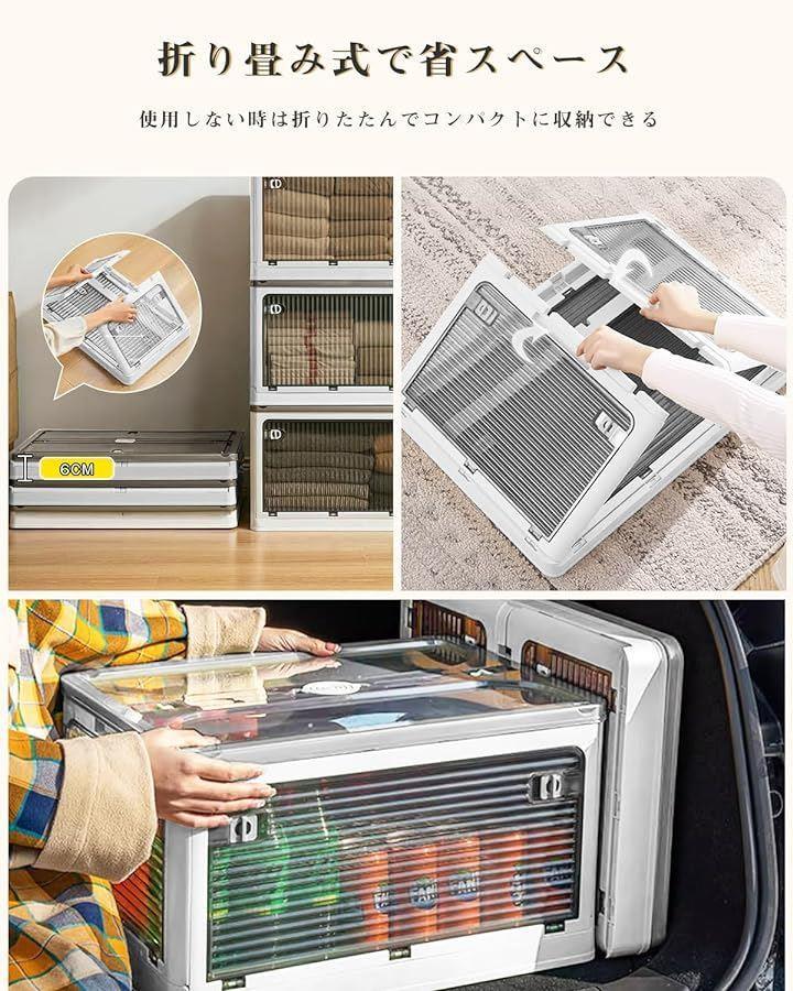 「防塵▪防湿 収納ボックス」スペースを節約して、日常の衣類や本やおもちゃ食品などの物は折り畳みコンテナに置いて、ふたを閉めれば、ホコリ防止、防塵・防カビ・防湿・防虫ができます。