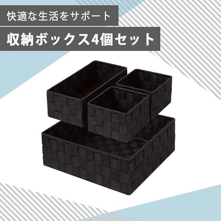「商品内容」 収納ボックス4個セット サイズ:画像参照 材質:ポリプロピレン カラー:ブラック、グレー