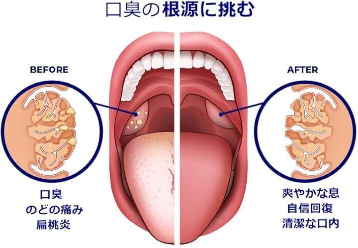 清潔&爽快な口内:膿栓や歯と歯の間に挟まった食物残渣を効果的に除去。