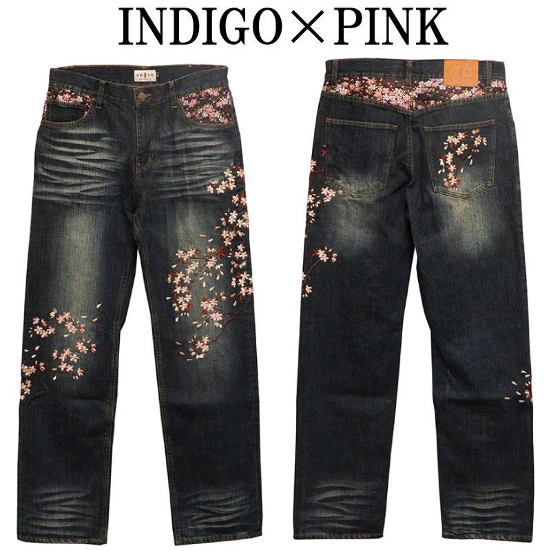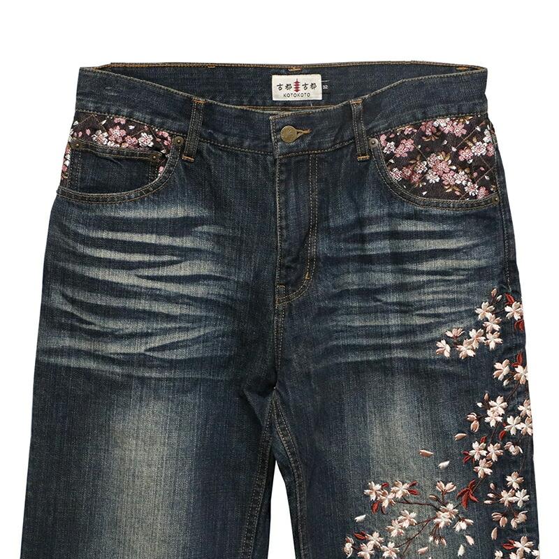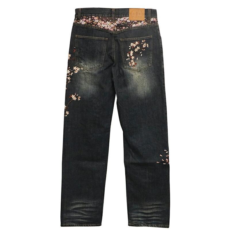 和柄の定番柄「桜」を総刺繍で落とし込んだデニムパンツ。