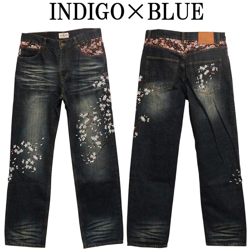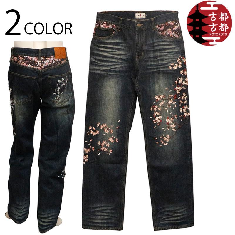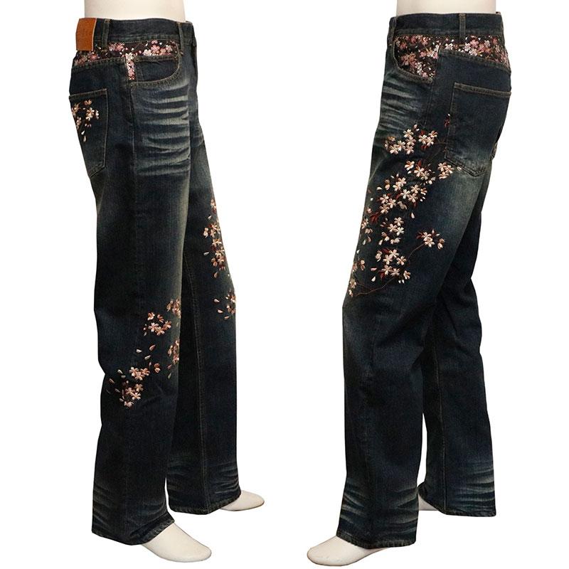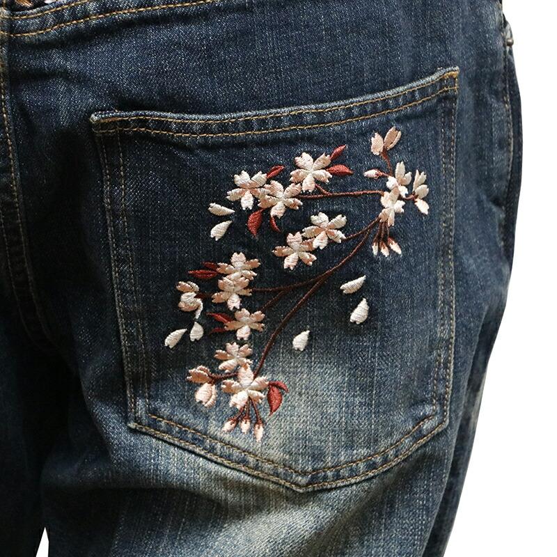 枝垂れ桜 柄 刺繍 和柄 デニムパンツ