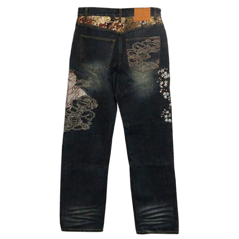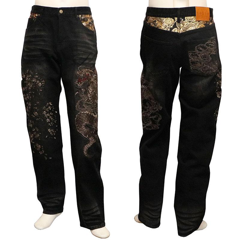 桜龍 柄 刺繍 和柄 デニムパンツ