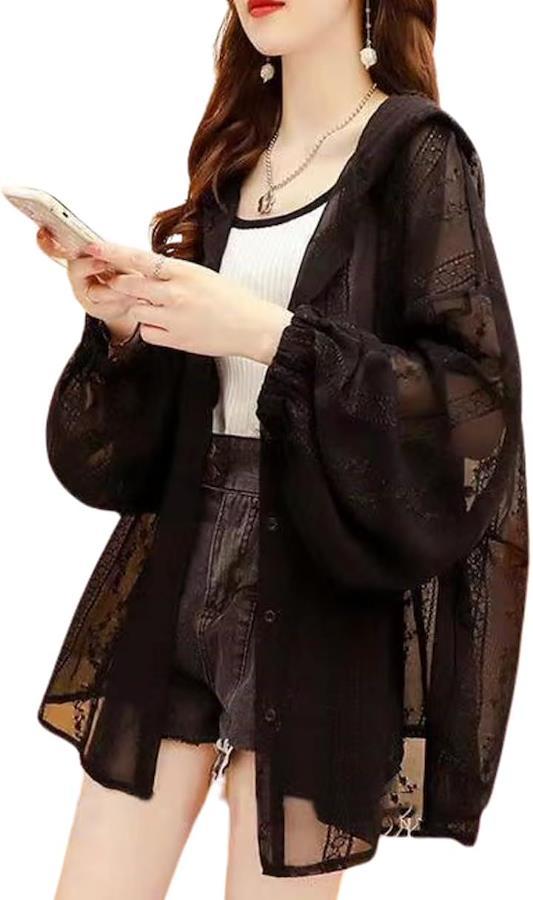 ほんのり透け感のある大人フェミニンな レースのデザインが目を惹く透け感のある華やかなレースパーカー 上品なレースデザインで甘くなりすぎず、大人女性にもぴったりです。