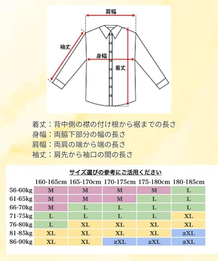 「サイズ」M・L・XL・2XL 「M」肩幅54/袖丈47/バスト106/丈69 「L」肩幅59/袖丈48/バスト120/丈70 「XL」肩幅60/袖丈49/バスト121/丈71「2XL」肩幅61/袖丈50/バスト123/丈72