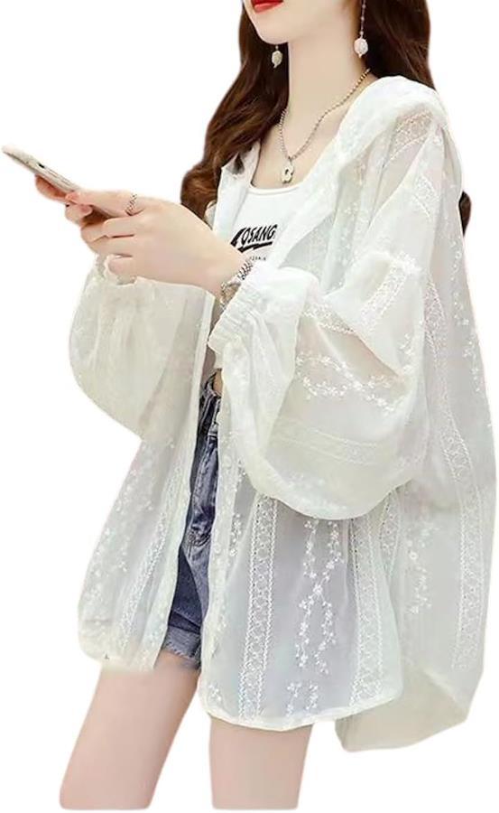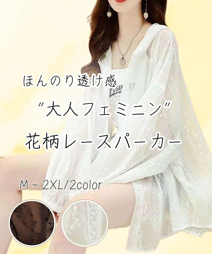 ほんのり透け感のある大人フェミニンな レースのデザインが目を惹く透け感のある華やかなレースパーカー 上品なレースデザインで甘くなりすぎず、大人女性にもぴったりです。