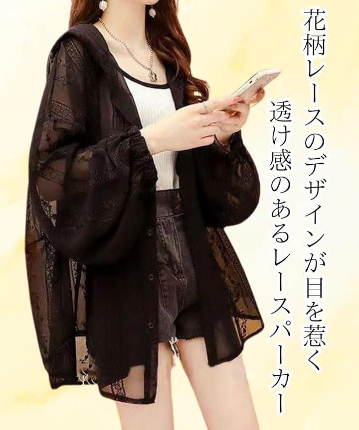 ほんのり透け感のある大人フェミニンな レースのデザインが目を惹く透け感のある華やかなレースパーカー 上品なレースデザインで甘くなりすぎず、大人女性にもぴったりです。