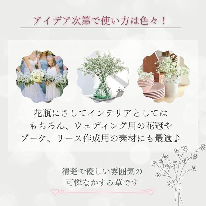 茎にワイヤーが入っているため、お好みの角度、ボリュームにアレンジが可能です花瓶にさしてインテリアとしてはもちろん、ウェディング用の花冠やブーケ、リース、ハーバリウム作成用の素材にも最適です