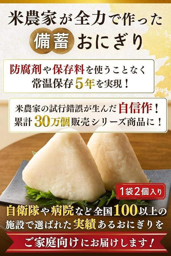 「累計30万個販売シリーズ商品」自衛隊や学校、企業や病院など全国100以上の施設で使用実績のあるおにぎりと同じ原料が使われている備蓄おにぎりをご家庭向けに商品化しました。