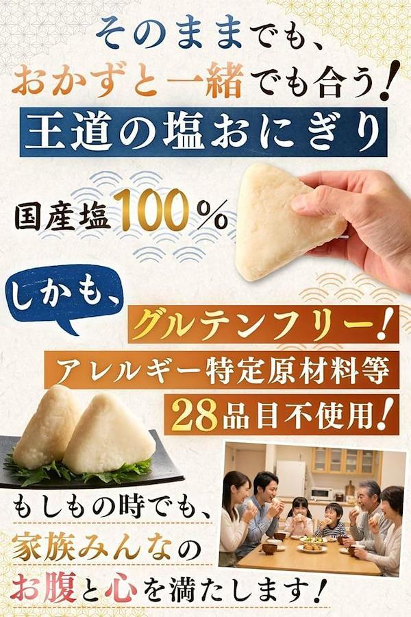 「国産塩を使用した塩おにぎり」シンプルな味付けにこだわり、そのままでも、おかずと一緒でも合う、飽きのこない塩おにぎりに仕上げました。