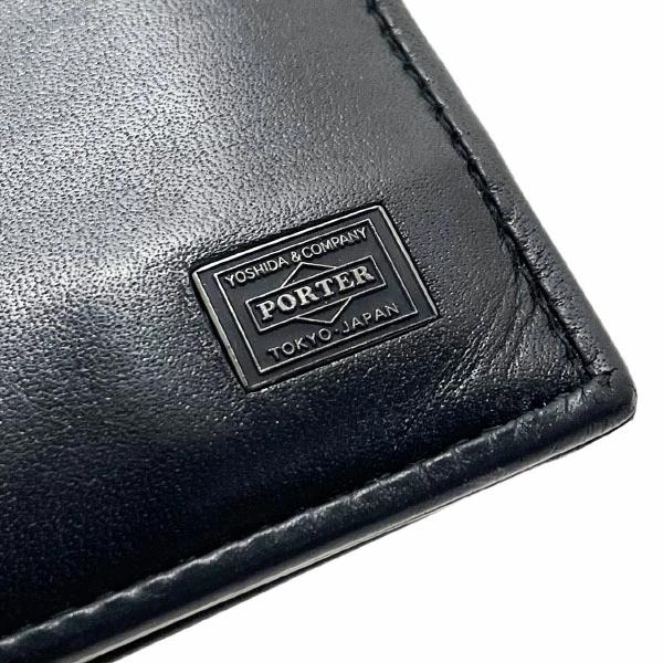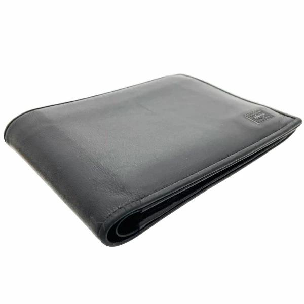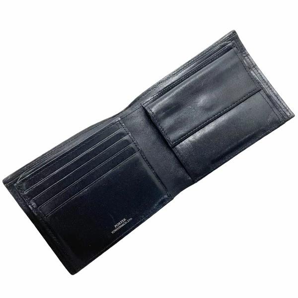 吉田カバン 財布 ポーター プリュム ウォレット ブラック 黒 レザー 革 179-03871 PORTER PLUME 二つ折り財布 コンパクト財布 ミニ財布 ミニウォレット サイフ メンズ 紳士 男性【中古】