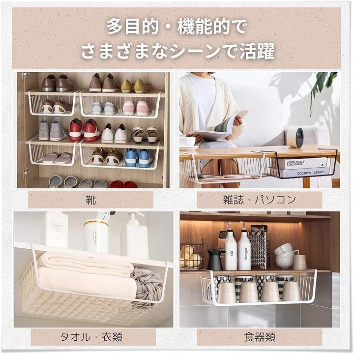 「デッドスペースの有効活用」収納がも少し足りないと感じる食器棚の下や机、本棚、洗面台など、棚板があれば、どこにでも取り付け可能です。
