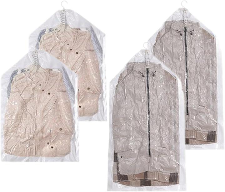 「最大80%スペース節約」吊るせる衣類圧縮袋は、掃除機で空気を抜くだけで衣類をコンパクトに収納可能。