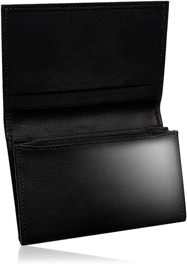 メインポケットは本体の底がすぼまって、スッキリとしたフォルムの風琴マチタイプの名刺入れです。