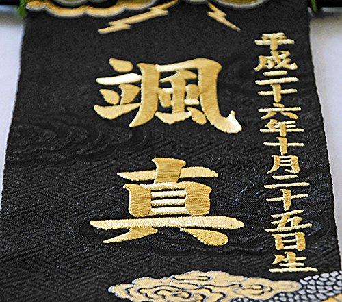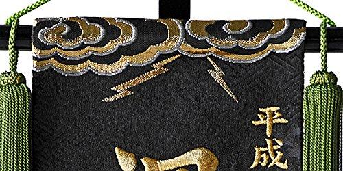 名前旗用の名前・生年月日は、ご注文後にアカウントサービス - 注文履歴 - 出品者に連絡 - 件名「製品のカスタマイズ」 からご連絡ください。(複数の柄を同時にご注文頂く場合は、商品名と名入れ情報を判別できるようにお知らせください。) 間口:18 奥行き:10 高さ:45cm(飾り時) 幅13×高さ36cm(旗のみのサイズ) 苗字・読み仮名は刺繍の対象にはなりません。 豪華な名前旗です。店長オススメ!玄関やサイドボード、節句人形の隣等、飾る場所を選びません。商品価格にはお名前入れの代金も含まれております。製品の都合上、キャンセル・返品・ご変更はできませんのでご了承下さい。 舗織物店(京都西陣の金襴織)にてオリジナルデザインの男児名前旗 雷鳴 を織って頂きました。 金色系や銀色系のヨロイ/カブトにも合わせやすいように雲やカミナリそして龍の図柄を金糸や銀糸を使用して豪華で表情豊かに表現された名前旗です。 黒無地部分にも地紋として吉祥を表す紗綾形紋(さやがた)と瑞雲の柄を入れ旗全体がひとつの風景になる様に織り上げられた迫力と豪華さを兼ね備えた男児のお祝いに相応しい招福名前旗です。 名前旗は、お食い初め、お宮参り、節句、お誕生日など様々なシーンでご利用頂けます。お届けには1週間から2週間前後のお時間を頂いております。(祝 節句 の刺繍には対応しておりません)★安心の高田屋人形店証明書付きです。当店以外での購入にはお気をつけ下さい。
