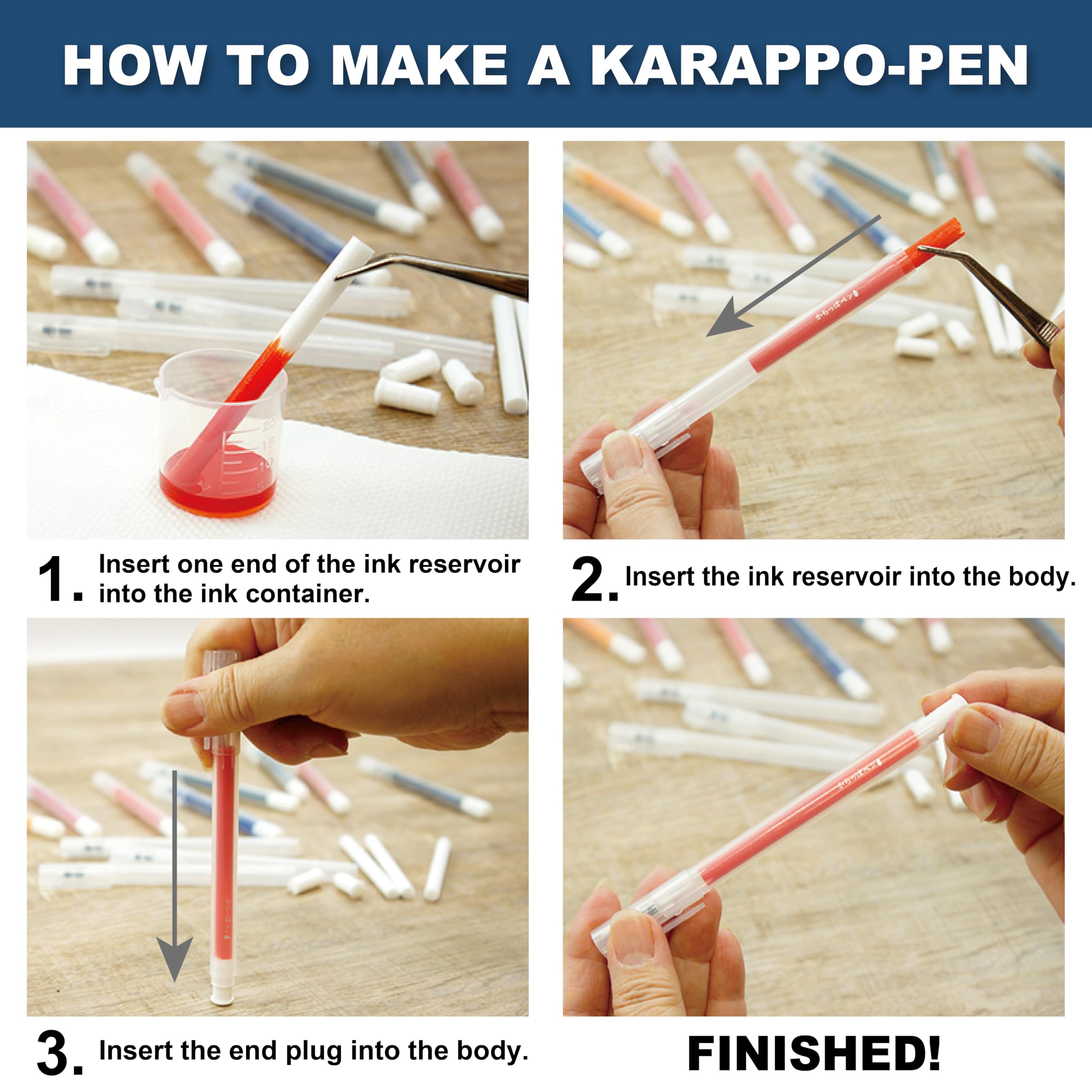 綿芯にインクを付けて、本体軸に入れてセットするだけでオリジナルのカラーペンが完成します。