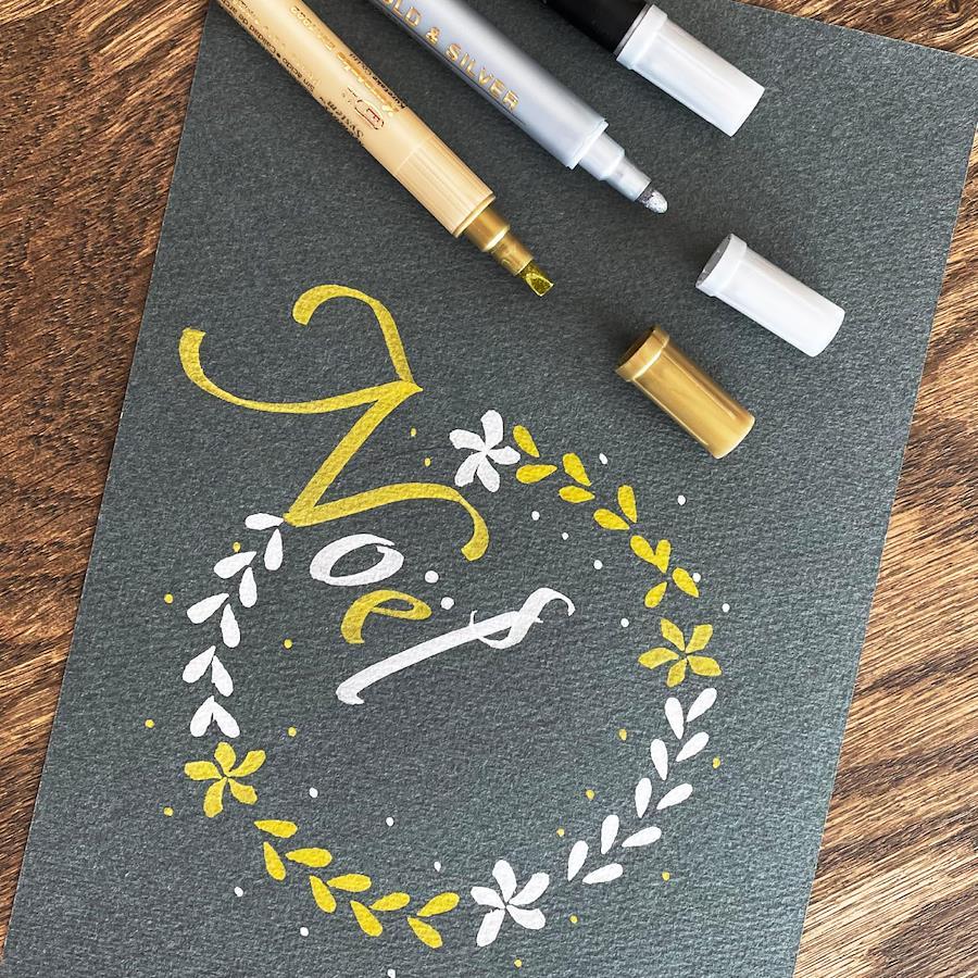 濃い色の紙にもくっきり描けるので、カード作りやイラストだけでなく、写真の文字書きにもおすすめです。