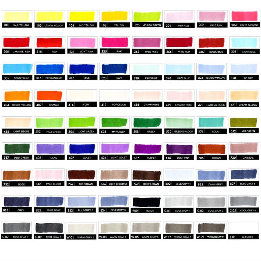 【グラフィックデザイン、漫画、イラストなどに使える!ツインタイプのカラーマーカー72色セット】ツインタイプのアルコールベースカラーマーカーです。アルコールベースなので、コピートナーや水性顔料インキの上から描いてもにじみません。建築、プロダクト、グラフィックデザイン、マンガ、イラストなど様々な用途に使えます。付属の透明のブレンダーを使えば、色をぼかすことができます。色を重ねることでグラデーションも可能です。71色+ブレンダーの豊富なカラーラインナップで、幅広い表現が可能です。太い方が線幅6.5mm、細い方が線幅1mmのツインタイプ油性インキ