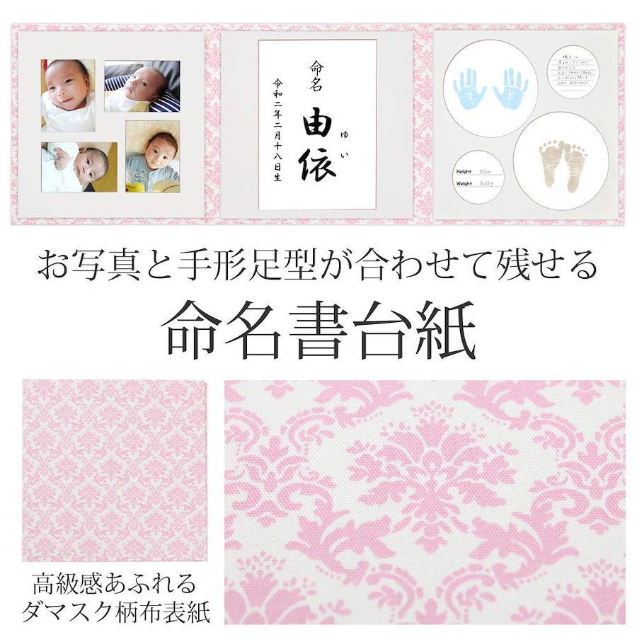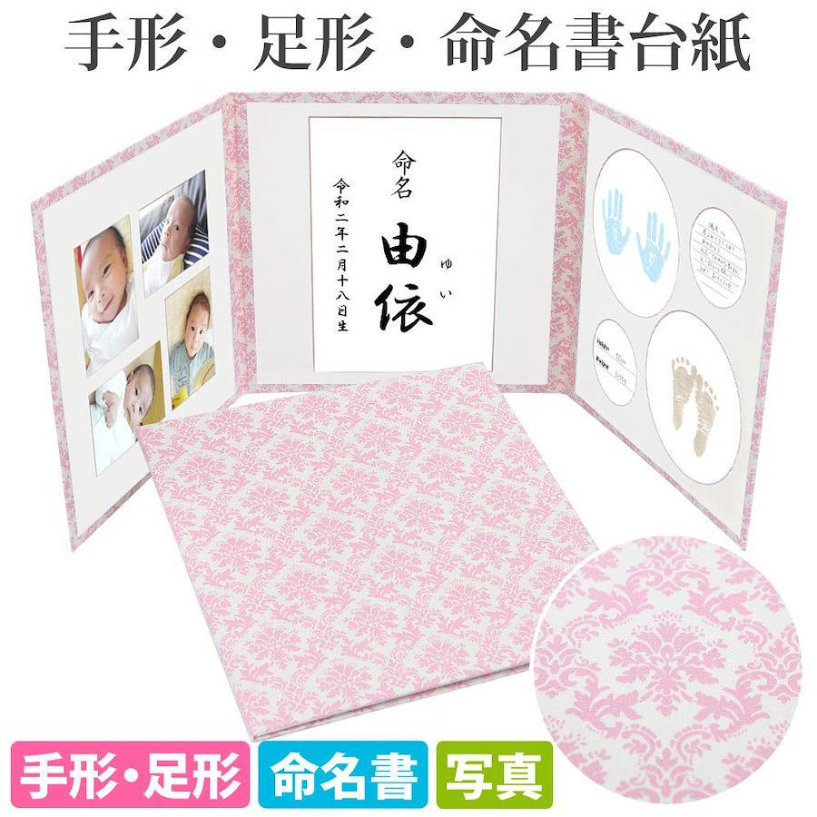 命名書 台紙 手形 足形 赤ちゃん 手形 足形 写真 お名前がすべて入る【ダマスク(ピンク) L判セット】 人気 可愛い かわいい 手作り 飾る 内祝い シンプル 赤ちゃん命名書台紙 出産祝い 記念品 命名紙 名づけ 命名 祖父母 プレゼント 自分で書く オーダー 子供 名入れ 用紙 お七夜 日本製(ダマスクピンク63)