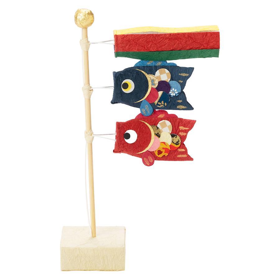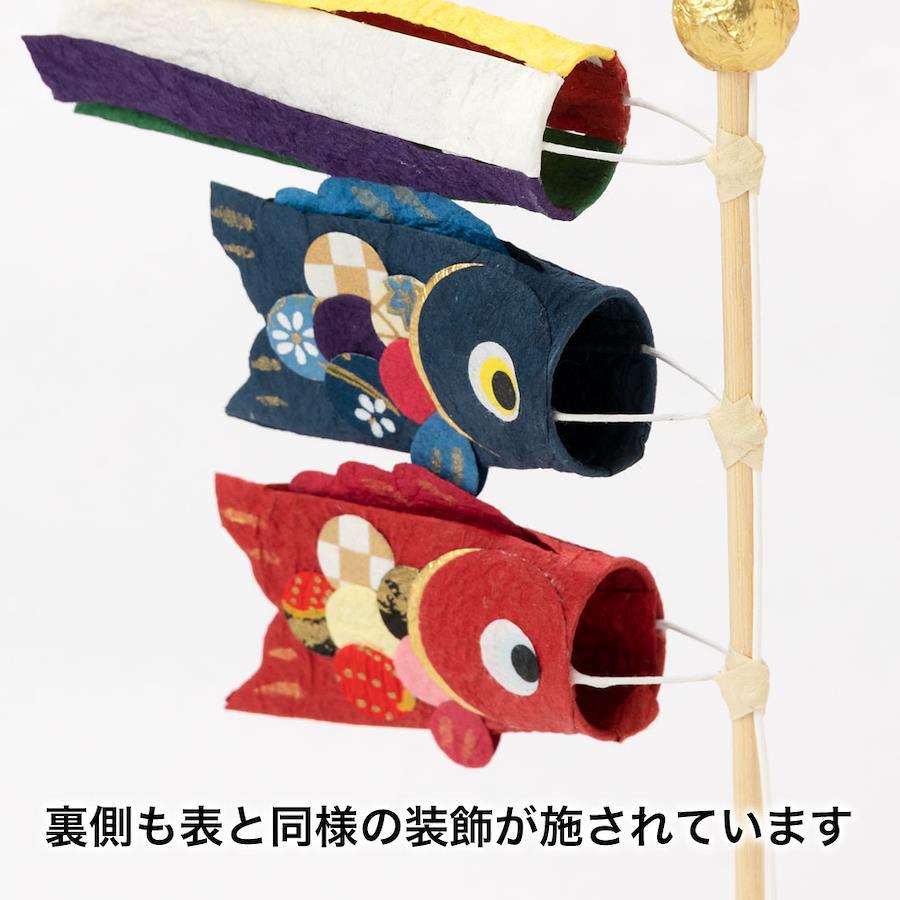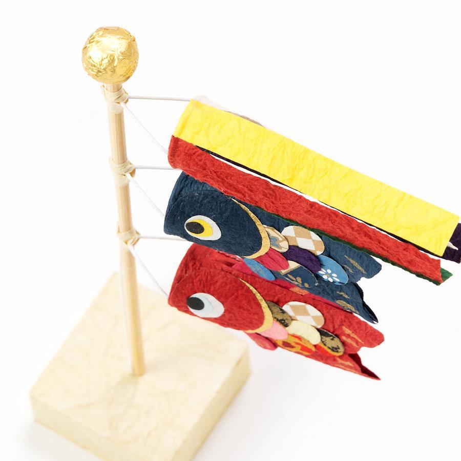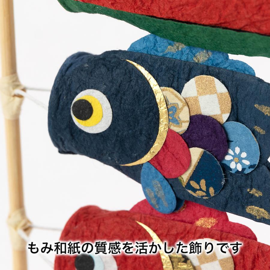 その鯉のぼりを和紙で製作しました。もみ和紙を使い和紙の質感を活かした飾りです。