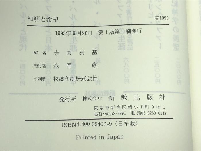 商品名:和解と希望―告白教会の伝統と現在における神学 新教出版社 寺園喜基