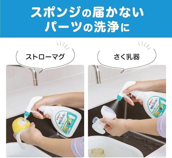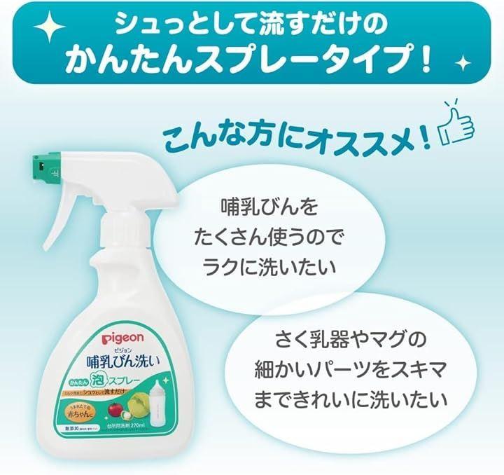 ミルク汚れにシュっとして流すだけのかんたん泡スプレー。植物由来の洗浄成分の哺乳びん洗いです。