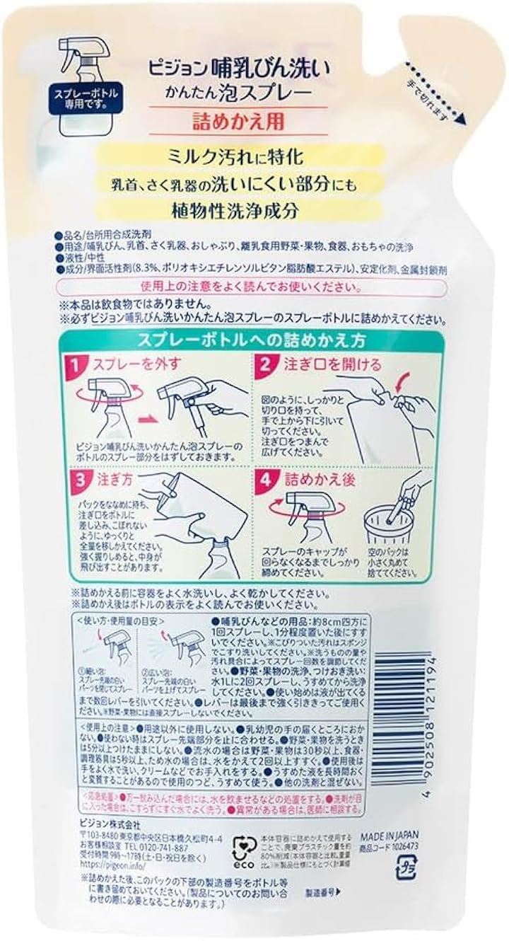 *必ず哺乳びん洗いかんたん泡スプレーのスプレーボトルに詰めかえてください。