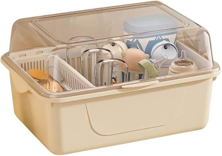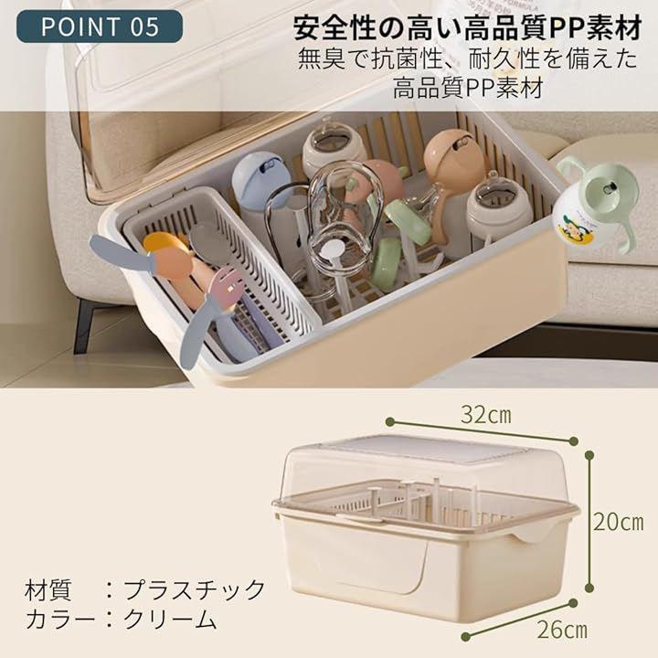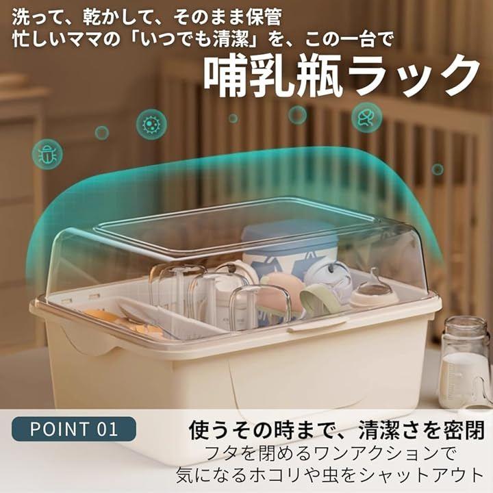 「蓋付きで叶える、ワンランク上の衛生保管」洗浄後の哺乳瓶を、ほこりや気になる虫から守るボックス型の哺乳瓶ラックです。