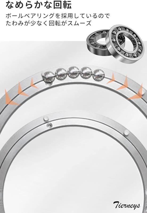 「軽くて丈夫。滑らかな回転」 リング型の中空構造にし、軽量薄型なので取り扱いやすいデザイン。