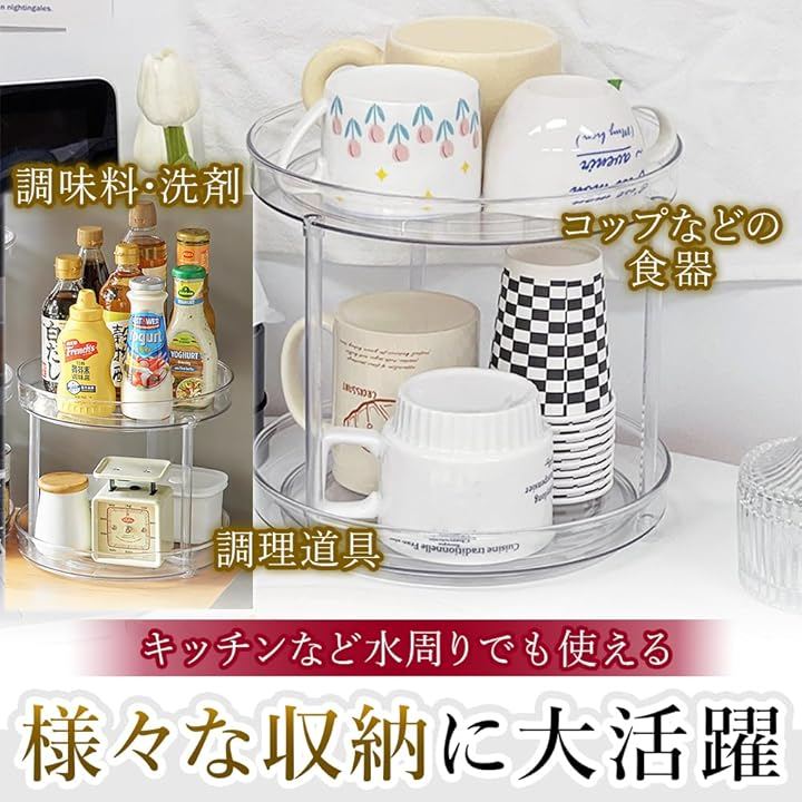 上下2層のトレイにアイテムを置けるため、余りがちな上部空間を活用し省スペースで保管可能。
