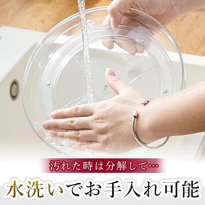 トレイからポールまで全面クリアカラーなので、洗面所・リビング・キッチンカウンターなど様々な場所に置いても馴染みます。