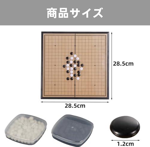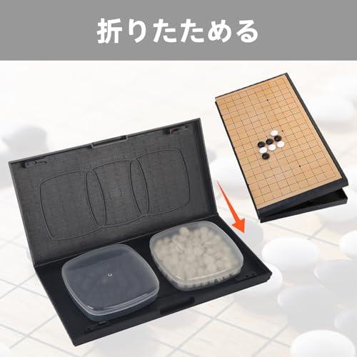 マグネット式: この囲碁セットは碁石の底部にマグネットが装着されているので、碁石は落ちにくい、多少の動きや傾きがあってもしっかり所定の位置を保ちます。磁力で碁盤と碁石がズレない、ストレスなく快適に練習や対局をすることができます。 折りたためる: 折りたたみ式の囲碁セットは、碁石をプラスチックケースに入っていて、折りたたんだ碁盤の中に収納できます。省スペースで収納場所に困りません、収納や持ち運びが便利のでリュックサックや手提げかばんなどに入れて練習や対局にも気軽に足を運べます。 防水設計: 囲碁盤と碁石の材質はプラスチックとPVC素材で防水仕様となっており、防水性、防湿性、耐久性に優れます。室内は勿論のこと、近隣の公園での友人との対局やキャンプなどアウトドアでもご愛用いただいております。 優れた材質: 碁盤本体のフレームは頑丈なPVC素材で脚幅が広く、耐圧性に優れており碁盤をしっかりと安定させる構造となっております。碁石は環境に配慮したPVC素材です。バリの無い滑らかで美しい表面は触り心地良く、打ち味も快適です。 頭脳トレーニング: 囲碁は戦略的なゲームであり、局面を読み解く力や判断力、思考力を養うのに適しています。頭を使って問題を解決することで、脳のトレーニングに役立ちます。また囲碁は一局が長時間にわたることがあるため、集中力を高めるのに適しています。