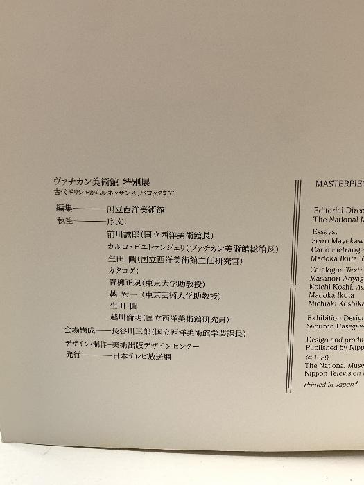 図録 ヴァチカン美術館特別展 日本テレビ放送網 1989