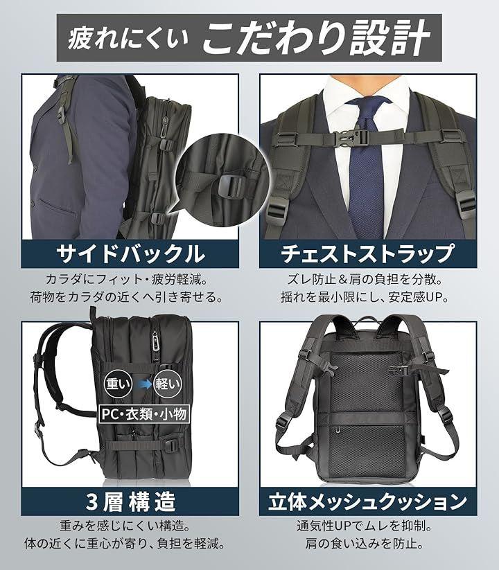 「3層構造」仕事道具とプライベート用品をすっきり整理できる、メンズビジネスリュック。