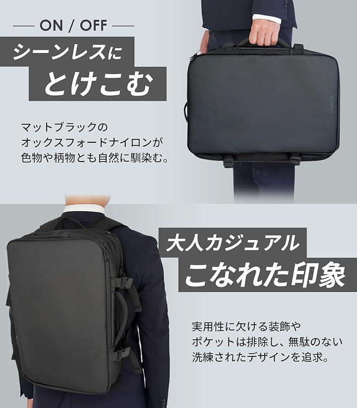 通勤から出張まで、幅広いシーンに自然と馴染むシンプルな佇まいと、控えめなロゴデザインが特徴です。