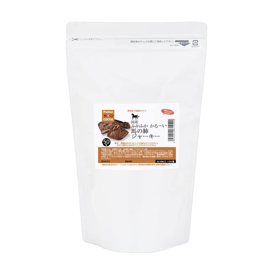 通常1-5営業日で発送≪新品・未開封品≫:さくふわ食感の馬肉の肺ジャーキー新鮮な馬の肺をオーブンで美味しく焼き上げた犬猫用ジャーキーです。他のお肉にアレルギーのあるペットにもおすすめです。小型犬や高齢犬が食べやすいさくさくふわふわ食感のジャーキーです。PackunxCOCOA国産ふかふかかる~い馬の肺ジャーキー30g対象犬・猫機能おやつライフステージオールステージ(生後6ヶ月以上)特長●他のお肉にアレルギーのあるペットにもおすすめです。●馬の肺は鉄分やビタミン・ミネラルが多く含まれています。●簡単に砕くことができ、お口の小さなわんちゃんや猫ちゃん、高齢のペットが食べやすいさくさくふかふかのかるーい食感です。●無添加・無着色・保存料不使用。味付けはしておりませんので無塩です。素材本来の味をお楽しみください。●品質劣化に強いアルミ袋を使用。窒素封入したチャック付き袋に詰めてお届け。(窒素ガスを充填しているため袋が膨らんでいます。)内容量50g原材料馬肺(アルゼンチン産)原産国日本与え方●愛犬・愛猫のおやつとして少量与えてください。●大きい場合には小さくして与えてください。保存方法●直射日光や高温多湿の場所を避けて保存してください。●開封後は必ず封をして冷蔵庫で保存し、消費期限に関わらず早めにお与えください。ご注意※6ヶ月未満の幼犬・幼猫には与えないでください。※天然素材なので、形・色合いに多少のバラつきがあります。※本品を与える際は、喉に詰まらせないよう様子を見ながら与えてください。※本品は保存料を使用しておりません。消費期限内でも保管状況によっては、カビが発生する場合がございます。開封後はお早目にお与えください。