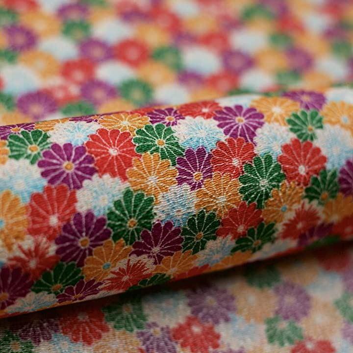 ・和小物の定番・ちりめん細工にも使用できる 国産レーヨンちりめん(縮緬)友禅生地・長さ:約1mx71cm、裁断済み (幅は約73cmございますが、使用できる長さは約71cmとなっております。