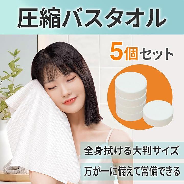 水に数秒浸すだけでしっかり全身を拭けるバスタオルに変身する「圧縮バスタオル5個セット」は、旅行や防災用、出張やアウトドアに最適な便利アイテムです。