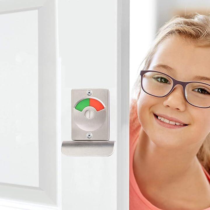「取り付け簡単」内側から施錠でき、外側はロックの状態がわかる表示窓に、空いている(緑色)/使用中(赤色)という2種類の表示カラーがあります。