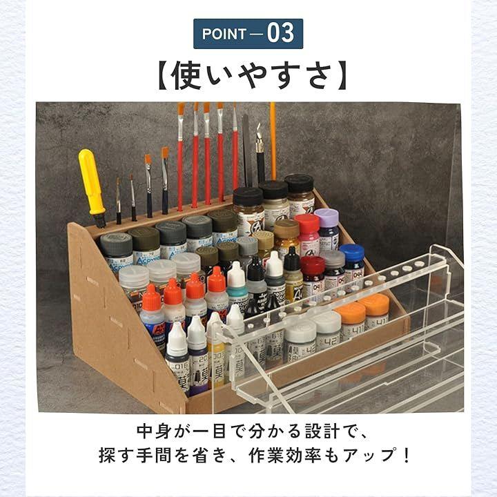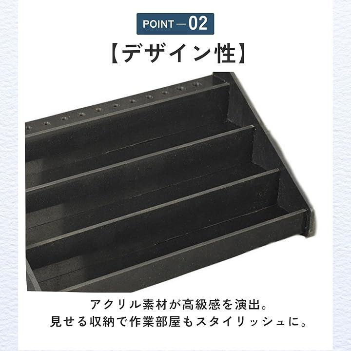 「機能性」段ごとに種類を分けて分類でき、筆用スタンド付きで整理整頓もラクラク。