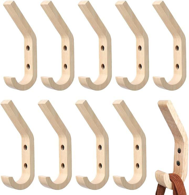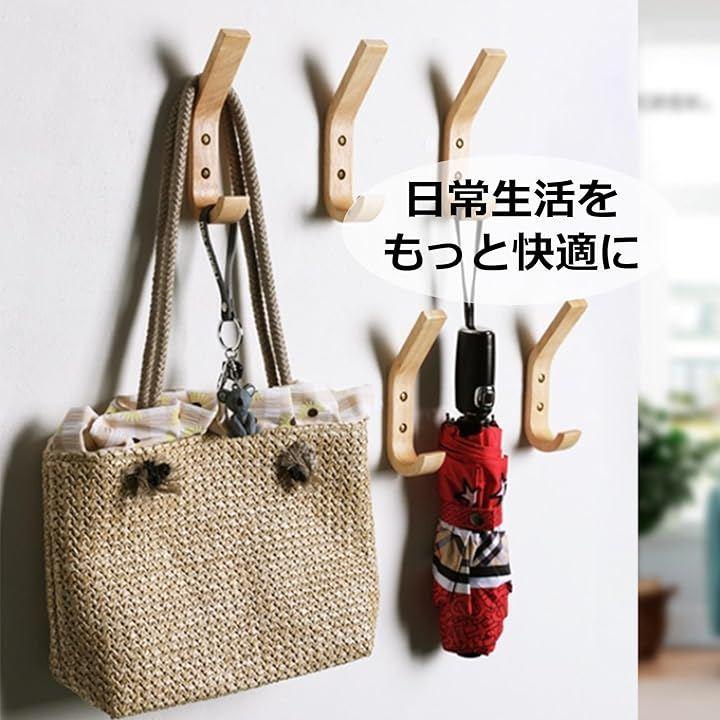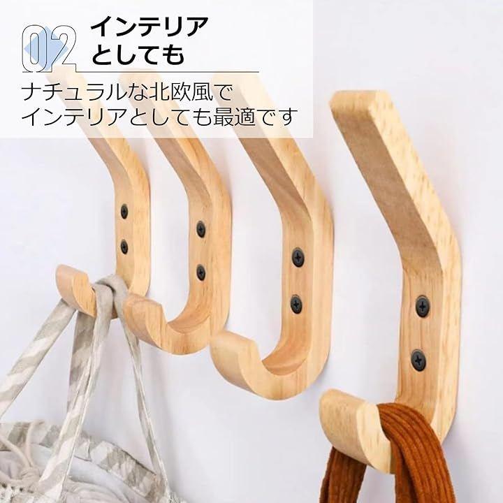 「木製壁掛けフック4個セット」木製かつ北欧風のJ字壁掛けフック4個セットです。