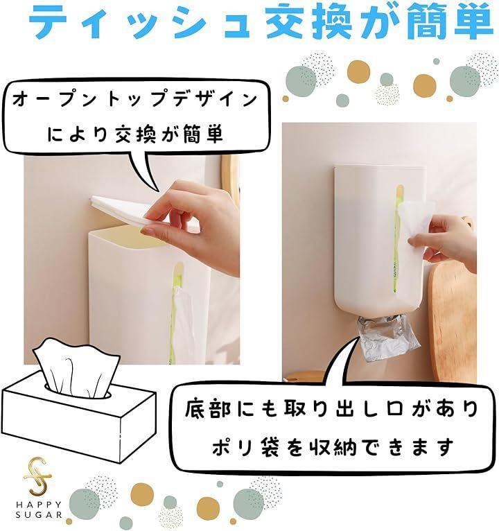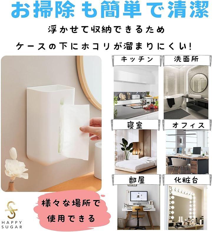 この壁掛けティッシュケースは、壁に簡単に取り付けることができ、浮かせて収納することで、スペースを有効活用できます。