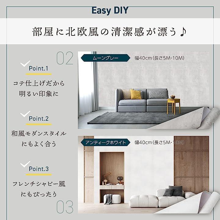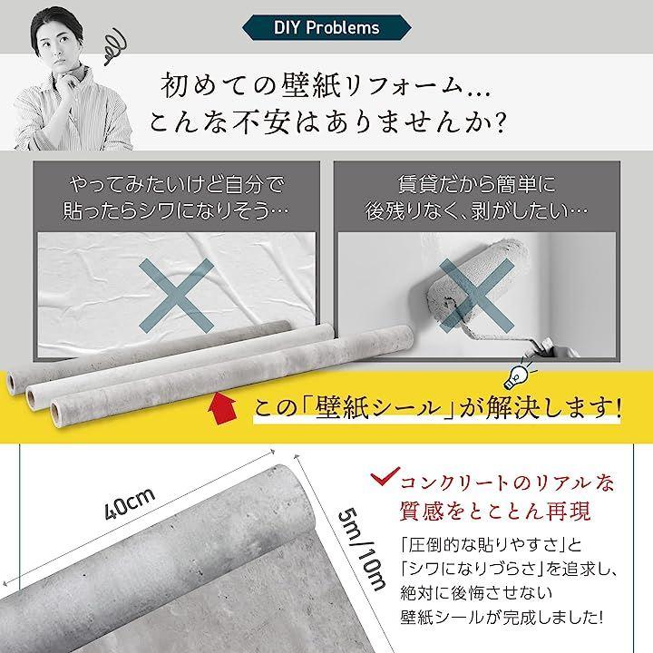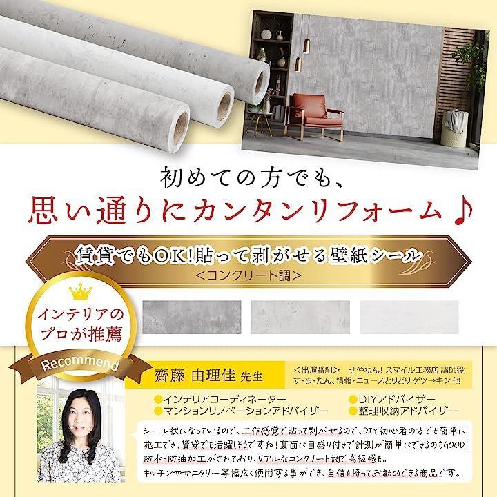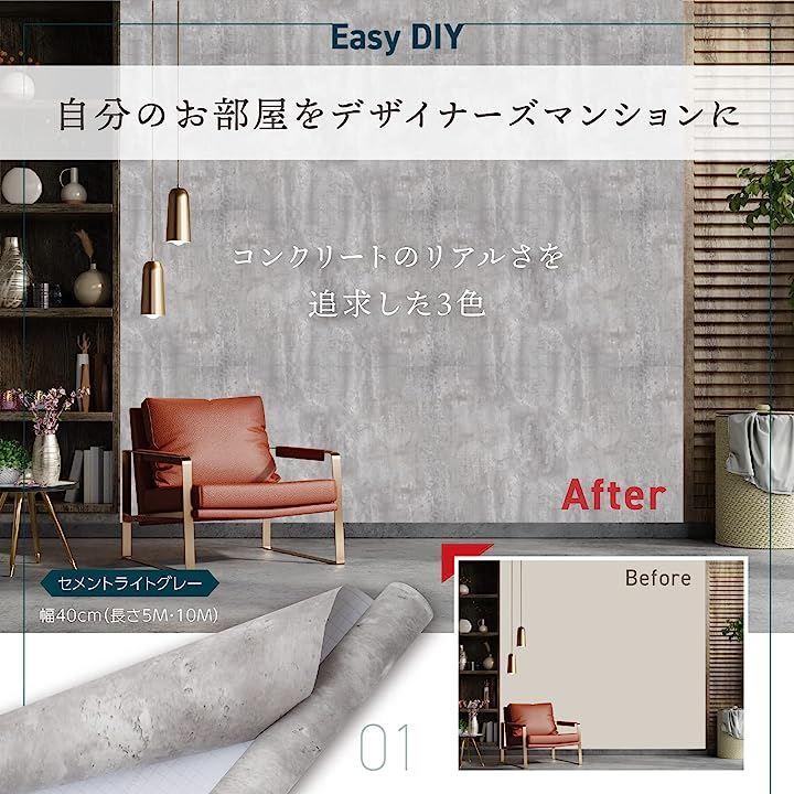 v「壁紙シート コンクリート調」 幅40cm 長さ5m/10m 厚み0.3mm つや消し仕様 この壁紙シールは、リアルな3D仕上げ質感、コンクリート(セメント)素材感をとことん再現し、北欧風、デザイナーズマンションのおしゃれな雰囲気、空間に変えてくれます。