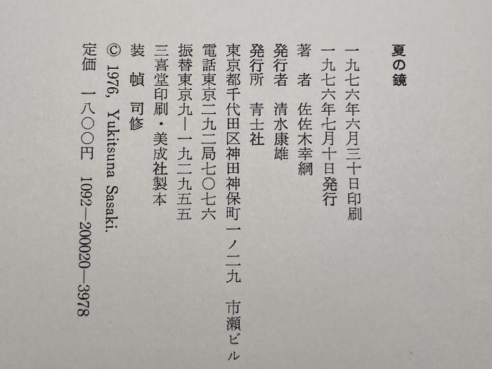 商品名:夏の鏡 (1976年) 青土社 佐佐木 幸綱