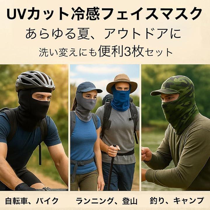 「UVカット&首まで360°ガード」 首元までしっかり覆うフルフェイス設計が、夏の強烈な日差しや照り返しから肌を守ります。