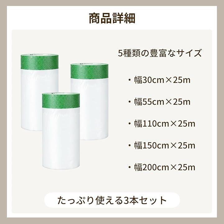 / 一本当たりの長さ:25m、3本セット(合計75m) / 塗装・補修・掃除・引越しなどの養生に最適です。