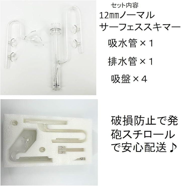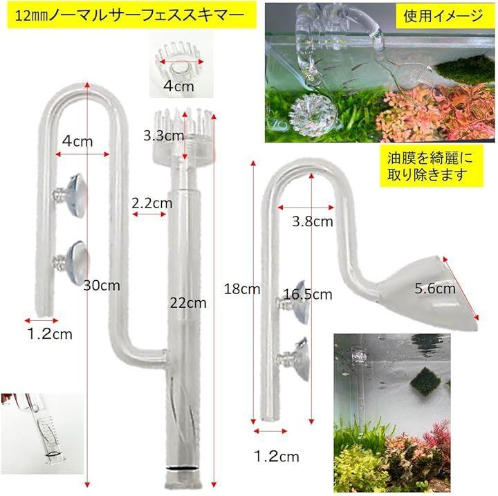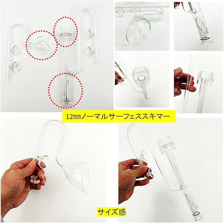 「12mmノーマルサーフェススキマー」:ガラス製 給水パイプ / 排水パイプ /吸盤4個 ホース規格 12mm