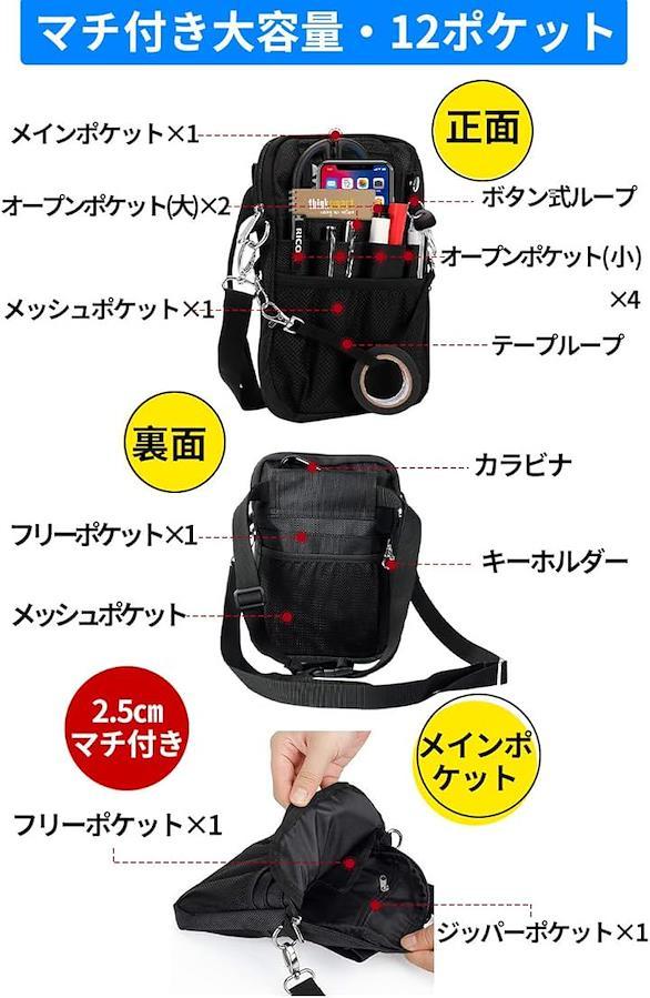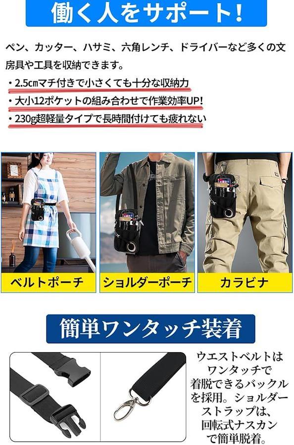 *マチ付き12ポケットと多数の便利機能を兼ね備えた仕事用ウエストポーチ。