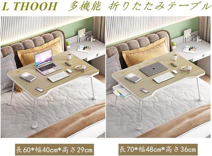 L THOOH ちゃぶ台の足が折りたためて、折りたたみ机ば厚さ約5.5cmになるので、ベッドの下などの隙間などに収納でき、便利です。