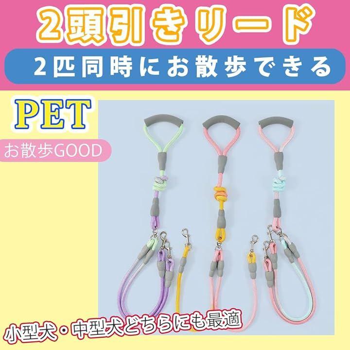 2匹の愛犬を一緒に楽しく散歩できる多頭飼い リード。丈夫で信頼性の高い犬用リード ドッグリード ペット用品として長く使えます。